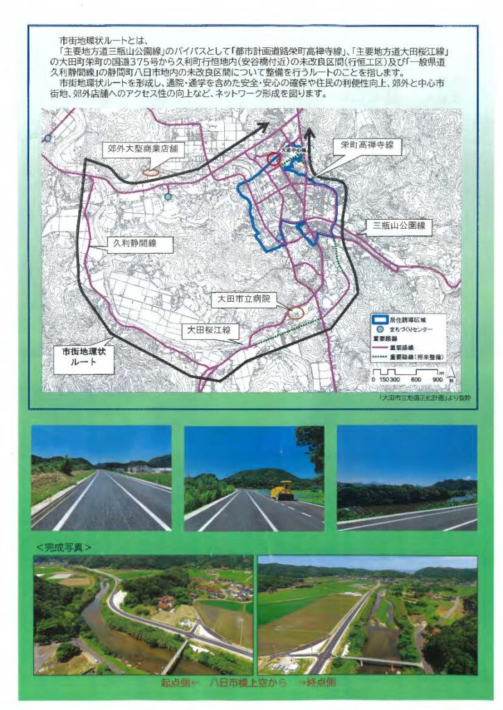 当日は、大田市長をはじめ来賓の方々のご祝辞の後、地元土江こども神楽団により『恵比寿』が舞われ開通をお祝いしました。事業概要等は以下のとおりです。